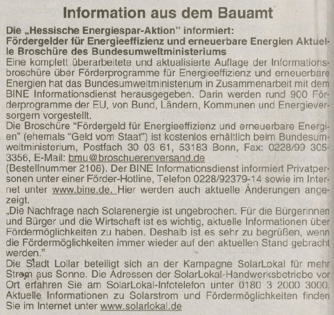 Mitteilungsblatt Stadt Lollar vom 12.10.2007